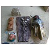 Lot of 5 Decorative Viking Wall Art Statues Wood Ceramic |