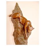 - Bronze "Cliff Cat" Sculpture on Wood by Chris Navarro