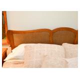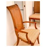 - Set of 6 Rattan-Back Dining Chairs with Upholstered Seats
