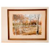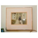 - Framed Watercolor Signed by Artist, Win Jones, "Rain Figure with Computerized Images"