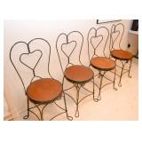- Set of 4 Vintage Iron Ice Cream Parlor Chairs with Sweetheart Backs