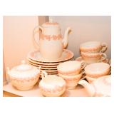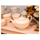 - Wedgwood of Etruria & Barlastion Embossed Queen's Ware Tea & Coffee Set (Pink & White)