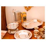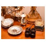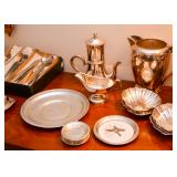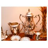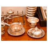 - Rare Reed & Barton Silverplate Holloware 5-Piece Tea Set: Tea Pot, Sugar Bowl, Creamer, Tea Strainer, Sugar Tongs