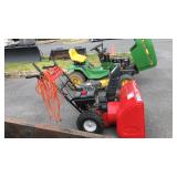 April 3 2017 Online Auction 1 Group of barb wire fence roll, and misc short pieces of heavy duty electric wire 1 Catalog updated as we continue to set the auction up. Please read all terms Pickup is Tuesday 4/4 from 9 am to 6 pm Watch the decimal point. Thanks 3 Three metal wreath frames, A Frame style self at an ding type 5 Child's bike Kent 1000 overdrive okay but does show normal use 8 Road Sign Slow Two Way Traffic arrow pointing to the left triangle shaped sign 10 Road Sign One Way arrow to the right, older sign here black background white arrow shows some age wear along edges but not too bad guys nice older sign here though 16 Child's work or play type table with built on bench seat adjustable in height 19 Wheel Barrow lightweight home owners garden type nice ready to use condition 20 Troy-Bit 21" mulching mower 6.50hp with rear bagger and manual 22 Craftsman Platinum 22" cut push mower 700 series Briggs engine rear discharge but no bag 24 Husqvarna 5521CHV push mower with Honda engine rear discharge with bag needs front wheels replaced still working just running on slicks 26 Black painted settee bench with back rest artist painted with birds beginners artist that is but nice bench 48" wide 30 Scotts 3000 broadcast spreader with poly hopper nice condition 32 3 wire heavy duty wire cages for tomatoes or other garden use 34 Two poly folding patio or outdoor end tables, one green, one light tan 36 10 gallon galvanized can with locking lid like new condition includes clothes ironed and green Rubbermaid 1 1/2 quart pitcher 37 Two older industrial style metal trash can toppers with push flap door showing some age wear but still usable 38 Igloo ice cube portable cooler blue but there is a cracked in the lid needs cleaned inside but will still work guys 39 Group of 7 Signs metal signs Reserved Parking 8 8:00am to 5.00pm 12 x 18" all nice condition 41 Heavy duty wrought iron patio umbrella stand is missing the tension knob 42 Child's bike Tony Hawk Huck-Jam series nice looking bike here 43 Commercial Rubber maid Trash Can indoors type with removable flap door style 44 Commercial Rubbermaid Trash Can indoors type with removable flap door style dome lid type 45 Commercial Rubber maid Trash Can indoors type with removable flap door style 46 Two older industrial style metal trash can toppers with push flap door showing some age wear but still usable 47 Two older industrial style metal trash can toppers with push flap door showing some age wear but still usable note these are different designs as one is more triangle pointed shades top green color both neat finds 48 Two patio or outdoor chairs, aluminum frames have some paint flaking 52 Group of 15 wired section power strip outlets type found on most work shop tables 6ft long 53 Outdoor patio umbrella with plastic stand fabric umbrella shows some age use but will still work 54 Golds Gym Competitor series weight lifting set includes steel weights and bar bells 55 Girls Schwinn Deelite bike overall clean bike tires do show tread wear but still holding air 56 Child's plastic power chain pedal tractor tires showing cracks still rideable but worked hard by previous owner 57 Amesbury Hose King water hose reel with hose shows use wear 58 Two nice Sunbeam folding lawn chairs Web seating ready for spring 60 Exhaust fan roof type dome type hood cover 29" squared frame 62 Outdoor swing self lawn standing frame style swing seat canvas will need to be replaced as showing age wear 63 48" round glass top patio table green colored swing seat canvas will need to be replaced as showing age wear 64 Set of four patio table chairs white aluminum framed with removable cushions showing age use still okay but need some cleaning 65 Redwood armed outdoor lawn garden bench seat 60" framed with removable cushions showing age use still okay but need some cleaning 66 Lawn or patio swing, redwood stained armed glider type swing in frame stand 52" wide bench 67 Nice folding gravity recliner lounge chair from Cabela''s this one is ready to take camping now 68 Scaffolding buck system complete has two 18" wide x 7ft walk boards guys don't miss out on this one ready to go to work 69 Two folding lounge type chairs with foot rests note one is real nice clean other is molded and needs cleaned both have the storage bags 75 Bike 12 speed ladies bike needs air in tires showing some weather wear 76 Two pieces of signboard 36 x 48" marine style board single side painted Bank of Loudoun use as advertising or use to repaint for your own Bank name that is if you have enough money to own a bank works well for shop keeper also just kidding guys note on one the corner has damage 77 Misc grouping of aluminum framed window screens and 2 pieces of window 78 Poultry wire 36" high with 2" stays looks to be almost a full roll 80 Older GE Workshops bench grinder with wire brush, and buffer wheel 82 Lighting group, 2 orange extension cords, drafting table style light, and 2 industrial style hanging lights metal dome shades 83 Skid lot misc household glassware decor, basket, suit case etc 84 85 Skid lot hardware, lights, pull wheel, auto parts, door hardware 86 Skid of nice old new stock bathroom accessories commercial type, paper towel holders, soap dispensers, mirror, nice older style pieces but new never installed 87 Skid of hardware, wire, switch boxes, hinges, electric outlets, plus 88 Skid lot boxes of misc nails, floor tile, 2 ball bats and 1 tennis racket 89 Roll of floor cover paper contractors type, and 2 oak framed wall mirrors 90 Skid group, misc boxes of nails, car jack, fluorescent light fixture covers 92 Skid lot of several bundles of 2ft pieces of white select hardwood flooring new never installed 95 John Deer Hydro 175 Riding mower, does run 38" deck, FC420V engine seat has tears but still very usable 96 Huskee Xtreme Auger Electric start self-propelled snowblower 27 inch clearing width, 8 hp motor six forward and two reverse speeds 97 Lawn tractor dump cart 3 x 4ft bed used but still v