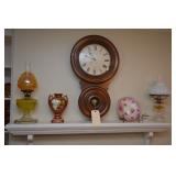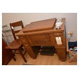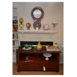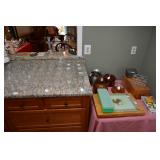 Items for sale: 1890 English Oak Grandfather Clock, NC early pine corner cabinet, White sewing cabinet, Singer Spartan Electric portable sewing machine, jewelry, pottery, table and chairs, lamps, dishes, glassware, clothes, linens, Chairs, oil lamps, |