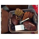 baseball gloves, footballs, golf shoes