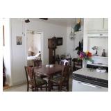 Things in Mother In Law House. Antique dining set, Antiques desk, Grandmother clock, sofa table, pair of marble dog bookends, 6 drawer dresser, Cane head board bed, lamp tables, fern stands, Wing back chair, Sofa bed, Ferns, oil painting on canvas, Exerciser, Refrigerator, Dishes, appliances.