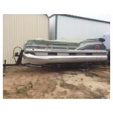 .Pontoon Boat, in Great condition. 2001 Tracker 18ft Sun Tracker Bass Buggy signature series. 40 hp outboard Mercery. Seats 8. 2 front fishing chair. Benimi canvas top. Live well with pump. Fishing rod holders. Duel battery system with Solar Charging panel. Detachable ladder. Lots of storage space. Indoor/outdoor marine carpet. Am/fm/ cd detachable face.