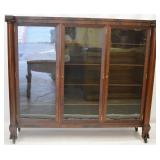 Mahogany 3 Door Display Cabinet, Column Sides, Flame Grain Veneer, Carved Paw Feet - Excellent Condition 71x17x61.5 |