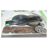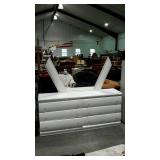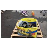 April 10th Online Auction 1 36" storm door has doggie door needs screen replaced Warehouse 1 IMPORTANT NOTE: Lots 1-269 are located at the warehouse. Most items are good sturdy pieces of furniture, Some will need to be painted or refinished. Lighting products are mostly for parts or repairs, some items needs cleaned either dusty from storage or just well used as it came to us. These ... 2 Two older Tonka dump trucks Warehouse 3 Pine wood book case cabinet with narrow shelf paper style storage on right side 48" wide 4 Faux fireplace mantle has heater insert plus small electric space heater 7 Big group of lamps, lights parts nice old wall light fixtures table lamps, brass carriage light, copper coal hock, ceiling lights, lantern parts one 8ft long table 8 Pair of pine end tables with drawer slated secondary shelf plus Asian decor lamp no shade 9 Brown upholstery living room swivel rocker plus if you want it a platform rocker needs cleaned 11 Big group of handicap accessories, walkers, potty chairs, tub seat, etc 12 Pine corner student computer work desk neat piece not bad great to paint to your taste 15 Pair of French Prov, step back end tables need cleaned or painted 16 Round oak lamp table needs refinished or painted plus brass and glass table lamp shade shows wear 17 Group lot, 2 small wood wall trinket shelves, metal CD storage rack plus 5 gallon gas can no cap 19 Book case type cabinet 3 open front top shelves over 2 doors below 27w x 50" tall 21 Kids room lot, baby bed, door castle play house, ride on hobby horse, play tent, toy box, all in the little ties plastic material 22 Tool lot, shovel, post hole diggers, square shovel, telescope pole 24 Group lot, metal folding bed frame, golf clubs in bag, skies with poles, snow board 25 Two wall pieces, one electronic game dart board no darts plus wooden cup and saucer display shelf 27 Maple framed wall mirror, and photo frame no glass piece 28 Three various lamp shades, and home furnishings counter stool swivel seat with back rest nice stool 29 33 Kodak printer not tested by company and a laminated 3 shelf printer stand 35 15 hole storage cabinet plus one maple dining chair has cushion residue on seat from sticking 36 Green painted counter top bread box no glass oval insert for lid, plus wall hanging trinket shelf 38 White bathroom type wall mirror with 2 storage drawers needs cleaned from dust is all 39 Dirt Devil feather lite bales vacuum cleaner owners says works 40 Breakfast table and three chairs blue colored with natural color tops, legs need to be tighten up 42 Child's play set lot, easy bake oven with bag of pans and accessories, plus game play table coffee table style by Imaginarium 43 Group lot, lightweight coffee table dark finish, white child's vanity stool seat, plus bathroom basket with new shower spongy scrubbers 45 Brown faux leather bench seat toy box seat lid lifts up for inside storage 46 Full size mahogany poster bed finial arched design with set of wood rails 47 Real pine wood book case 4 shelves 30w x 48" tall needs dusted painters this is the right kind 48 Real pine wood bookcase 3 shelves 30w x 38" tall needs dusted 49 Heavy plywood made storage cabinet with 4 slanted or angled shelves 20w x 48" tall 51 Power lift weight bar plus curling bar and 100lbs of weights total 52 Kids church or school chair, plus 4 ft light fixture with plug in cord 53 Home decor wall mirror, country craft framed with designers interior 22 x 41" 54 Office printer stand cabinet with double doors for storage metal with wood grain style look 55 Elephant figure table lamp has a little use wear marks plus a shade but is bent 55 Mahogany end/lamp table with secondary shelf needs dusted flame mahogany design on top 57 Modern oak chest on chest 2 over 3 drawers top has a split needs cleaned or painted 58 Sharp carousel microwave white color clean inside dusty on outside is all 59 Metal base early type kitchen cabinet with counter top needs painted 2 drawers over doors 30" wide 62 67 Office furniture, black lateral type cabinet with open shelf over wide drawer has a little wear damage, plus paper organizer cabinet 68 Home decor reddish color flower vase lightweight resin made piece 70 Maytag Bravo cloths washing machine top load white in color stainless tub, from long time seller nice clean machine just not tested by us 73 Living room chair in leafy design fabric shows use needs a bit of cleaning 75 Scotts Precision Green fertilizer drop spreader metal hopper seller code PY 79 Black leather love seat needs cleaned plus pine wood end table included 80 ESPN game table electronic floor type may not have all game accessories 82 White wire basket organizer sliding drawer type with 3 baskets 84 Four drawer lateral file cabinet no keys not locked as of now 85 Early maple 3 drawer dresser with mirror will need to be refinished or painted 86 Skid lot of box lots, misc items great for yard sales, and flea markets 87 Skid lot of box lots misc items great for yard sales flea markets 88 Skid lot of box lots, misc items great for yard sales, flea markets 89 Fortitude Fondness Geometric design rug, 91" x 121", needs cleaning on some spots 91 Pottery barn 5' x 8' rug needs cleaning, Franklin Burgundy/Green 94 Zebra patterned rug black and white 63" x 87", needs cleaned seller code CP 96 Early type writer stand plus lamp shade, and school desk chair with attached writing board 100 French Providence type 4 drawer chest of drawers needs painted 102 Metal mesh top 23" patio table and 2 matching chairs needs fresh coat of paint cushion seating on chairs 106 Radio Flyer wagon still workable but shows interior surface rust 108 Black home decor round top lamp stand and a another wooden end table frame Victorian decor no glass top frame is nice though seller code DG 115 Group lot brass table lamp, modern coffee table, artificial plant 117 3 blue card table chairs with table but top has tears, plus 2 maple chairs 118 119 Six dining chairs cushion seats wooden framed dark sta