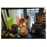 Thousands and Thousands of Beads (Swarovski Crystal, African Beads, Czech Fire Polished Beads, Glass Beads, Bliss Beads, Jesse James beads, Over 300 pendants, Darice Beads, Stone Beads, Agate Beads, semi-precious stone beads, Fresh water pearls, Jewelry findings) and so much more!!! We have everything kind of you bead you can think of!! Authentic Tribal Clothing from Africa Mud Cloth / Mud Cloth Poncho / Mud Cloth Pillows Kuba Cloth (3 different kinds) (Sheared/Died) Kenta Cloth - used for royalty Dogon African Tribe wall hanging symbols Several pieces of art by Charles A. Bibbs Kathleen Wilson Artist Romare Bearden Artist Heidi Lange Artist Hundreds of African, Kwanzaa and African-American Christmas Decorations... Dozens of Black Santa Clauses & Black Angels, Collectibles, six different sizes Sandy dolls (Angels), Many of these items have been retired and no longer available