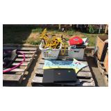 April 17 2017 3 Shakespeare catfish ugly stick with real and quickie pole 12 Garden flags and yard decorations Seller code F 13 Yard machines 20 inch cut push mower, runs good recently serviced 17 Black & Decker edge Hog two in one landscape edger, Electric 19 Trashcan filled with sand and some turf builder weed control 24 Skid lot mower wheels and axle, sheet metal, basket with parts 26 Skid lot cookware, nuts and bolts and nails, level and other miscellaneous hardware 27 Skid lot auto floor mats, spool of cable, spool with dog tie out, plumbing filters, bucket with garden edging 29 Skid lot outdoor lights, basket, far wood cradle, pet barriers seller code F 30 Skid lot Big box of toys, Gatorade tote and bottles, basket shaped like fire hydrant, crates with light parts, almost full jug of Roundup, tree stakes, handweights. Seller code F 31 Skid lot automotive parts jeep wrangler exhaust, floor mat, filters. Seller code F 32 Skid lot pet beds, futon cover, stainless steel bowls, stake tie out, Mat to go underneath the pet bowls 33 Skid lot with quesadilla maker, radio, grill brush, to the beach sign, lap throw, samples of paint, quick ladder 34 Skid lot Hula hoop, watering can, size 10 rubber boots, auto floor mats 61 Two cans of rubberized roof and flashing cement 2 3/4 gallon size cans 73 Fisher revolution control skis and poles Seller code F 77 Four tires with wheels, tires are dry rotted wheels are good fits ST 225–75D 15 83 Three White folding chairs Seller code F 84 Green Works 18 inch reel mower Seller code F 85 Weather guard truck box with new locks64 inches long 13 inches wide 16 inches deep 86 87 Outdoor snowman approximately 5 1/2 foot tall heavy made material 88 Rubbermaid cooler with two soft pack Coolers Seller code CH 89 Life stages dog kennel measures 36 long by 24 wide by 27 tall 90 Four mesh fabric stackable patio chairs one does have a tear and some rust 91 Extra large dog kennel with blankets measures approximately 27 inches wide 38 inches long 30 inches tall. Seller code MQ 92 Lightning McQueen world Grand Prix 95 bicycle with training wheels a few tears in the seat. Seller code F 93 Ultima dog kennel measures 30 inches long by 21 inches wide by 24 inches high 94 Best pet dog kennel with bottom tray, measures 20 inches wide 30 inches long 25 inches tall 95 Best pet dog kennel with bottom tray, measures 20 inches wide 30 inches long 25 inches tall 96 Dog kennel with Tray, measures 22 inches wide 36 inches long 25 inches high seller code MQ 97 Scotts self-propelled push mower with bagger . seller code F 98 Lifetime adjustable table will adjust and height from 24 inches to 29 inches tall, top is 30" x 19" seller code F 100 Weedeater brand gas blower model GBI 22V seller code F 101 John Deere model S1400 gas straight shaft weedeater, missing fuel cap, seller code F 103 Metal quilt rack, 24 inches wide 10 inches deep 36 inches tall seller code MC 104 Kettler pedal car seller code F 105 Two polystyrene/plastic planters seller code F 106 Metal plant stand will hold six pots seller code F 36 inches tall 107 Round wire wall hanging plant holder will hold 16 small pots. seller code F 108 Two seater porch glider Seller code FU 111 Two person sear auto/van seat with seat belts gray vinyl color33" wide 112 Two person sear auto/van seat with seat belts gray vinyl color33" wide 113 Two person sear auto/van seat with seat belts gray vinyl color33" wide 114 Single person auto/van seat gray vinyl color with seat belt18" wide 115 Single person auto/van seat gray vinyl color with seat belt18" wide 125 Little Tikes patio table with four way surround seating. Seller code MQ 129 Two porch railing sections white aluminum 41 h highx 70" long each 130 Gold zinc exercise pen model 548–48 with eight panels measures 24 inches wide by 48 inches tall. Seller code MQ 134 Turbo barbecue grill Seller code F 135 Gas propane tank with some contents Seller code FO 136 Plastic file storage box and metal cart on wheels seller code F 139 Swimming pool steps, measures 55 inches tall, seller code MQ 140 Swimming pool steps, measures 55 inches tall, seller code MQ 142 Suncast patio storage box and a few contents dust pan and dog water bowl measures 45 inches long 22 inches wide 21 inches tall seller code F 144 Precise fit brand pull behind lawn tractor fertilizer drop spreader with eraiter attachment 145 Plastic three drawer organizer measures 12 1/2 inches wide 16 inches deep 25 inches tall 146 Mini Chest six drawer plastic organizer one drawer has crack, measures 12 1/2 inches wide 16 inches deep 41 inches tall 147 Long handled talk a lot shovel, rake, sledgehammer, level, and edger 149 151 Metal storage shelf, measures 36 inches wide 12 inches deep 70 inches tall 153 Group lot with adult potty chair, two canes, crutches, two walkers 154 Plastic storage shelf, measures 35 inches wide 18 inches deep 74 inches tall 155 Commercial size trashcan with 200 pound capacity Seller code F 165 174 176 178 Galvanized trashcan with tool lot Bow saw, Black & Decker hedge clippers, level 183 Rubbermaid brute trashcan no lid On wheel dolly 185 Rubbermaid brute trashcan on wheel dolly, no lid 44 gallon size 186 Plastic storage shelf, measures 36 inches wide 24 inches deep 73 inches tall 187 Seven piece patio set with table, five chairs and one Ottoman. Table is 42 inches wide by 81 inches long 192 Tote with assorted pieces of wiring one appears to be a full roll of 250 foot 195 Tote with craftsman devices, toolbelt call mom rubber foam, contractors calculator with cover 197 198 199 201 LOT of TWO: cardboard box with tools and read toolbox with tools 204 Skid lot ice melt, round up, bucket of tools, shelving, tile sections 205 Skid lot wood chemicals, air bed mattress, tools, large box of light bulbs 207 Sweet retreat pet kennel for dogs and cats up to 12 inches tall and 20 pounds 208 Sweet retreat pet kennel for dogs and cats up to 12 inches tall and 20 pounds 209 Sweet retreat pet kennel for dogs and cats up to 12 inch