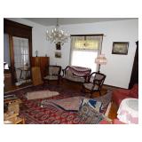 Personal Property to Include: Quality Antique Furniture and Appliances: Round Mahogany Pedestal Table with highly ornate Claw and Ball Feet with 6 Chairs Oak Hoosier Style Kitchen Cabinet with Canisters Round Quarter Sawn Oak Pedestal Table with 4 Chairs Oak Coffee Table with Slate Insert Quarter Sawn Oak Slant Front Secretary Desk Oak Potato/Onion Cabinet Large Selection of Oak Spool Legged Side Tables Oak 4 Shelf Shelving Unit Oak Music Cabinet Large Selection of Ladder Back, T Back, Oak, and Cherry Antique Chairs Circa Era Love Seat and Chair Several Oak End Tables 1930’s Style Oak Shelving Unit Pierced Tin Pie Cabinet Early Turn Spool Poster Bed Serpentine Oak Bow Front Wash Stand with Towel Bar Sellers Cabinet Sewing Cabinet with Ornate Woodworking Oak Hall Tree Antique Marble Top Wash Stand Marble Top Plant Stand with Spool Legs Fancy Rod Iron Bed German Grandfather Clock Waterfall Empire Style Dresser Waterfall Lane Cedar Chest Quarter Sawn Oak Dresser High Back Oak Full Sized Bed with Applied Carving 3 Piece Mahogany Parlor Set with Tapestry Upholstery Carved Front Side Table Empire Quarter Sawn Oak Side Board with Mirror Antique Oak School Desk Oak Knee Hole Presidential Desk with Chair Wooden Desk with Slate Insert Cherry Corner Cupboard Quarter Sawn Oak Side Table with Ornate Carving Frigidaire Refrigerator and Freezer Emerson Microwave 4 Drawer Metal Filing Cabinets Vintage Kenmore Gas Range Whitney Spinet Piano Frigidaire Refrigerator Gibson Upright Freezer Kenmore Front Load Dryer Estate Top Load Washer Energy Star Dehumidifier General Electric Roaster Oven