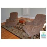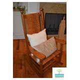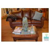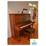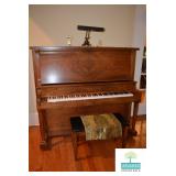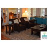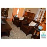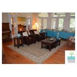 Living Room: Furniture, Upright Antique Piano, Pair of Leather Club Chairs, Antique Oak Curio Cabinet, Coffee Table, Rocking Chair, Small Round Custom Table, Rug, Smalls, Accessories, and More.