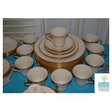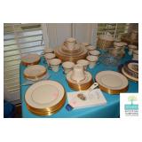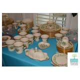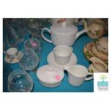 Dining Room: Farm Dining Room Table and 6 Chairs, China Cabinet, China (Lenox Eternal), Mirror, Smalls, Glassware, Accessories, Silverplate, and More.