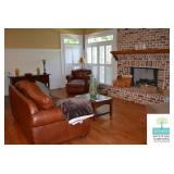 Family Room: Leather Sofa, Leather Oversized Chair with Ottoman, Oversized Chair with Ottoman, Sideboard, Side Table, Coffee Table, and More.