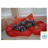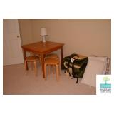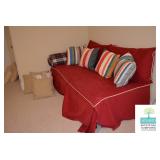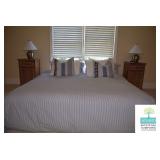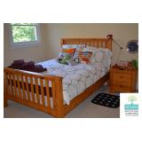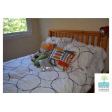 Bedrooms: Pair of Matching Upholstered Chairs, Rug, Vintage Chest of Drawers, King Mattress and Boxspring, Pine Side Tables, Pack and Play, Kitchen Table, Twin Bed/Daybed, Small Bookcase, Small White Vanity Table, Full Size Bed, Nightstand, Bookcase, Books, and More.