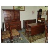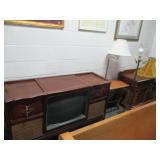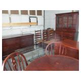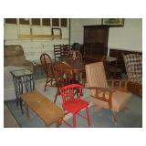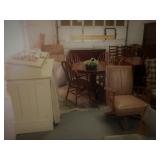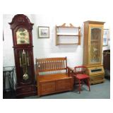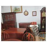 FURNITURE & MORE- Lots Of Furniture! Beautiful China Cabinet With Hutch, Buffet, Drop Leaf Table, 6 Chairs, Round Table & Chairs, Grandfather Clock, Project Buffet, Bench With Storage, Mid Century Swivel Rocker, Very Nice Gun Cabinet W Storage, Wrought Iron Wine Rack, Antique Child's Chair, High Chair, Glider Rocker, Recliner, Wrought Iron Coffee Table, 2 Magnavox Console Stereos, Solid Wood Book Shelf, Church Podium, Folding Wood Table, Storage Bins, Girls Toy or Hope Chest, Inflatable Chair, Lamps and SO MUCH MORE!