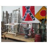 OTHER AWSOME ITEMS- Antique Well Water Pitcher Pumps, Wood Ladders, Variety of Many Windows, Door, Trim, 2 Very Large Industrial Lights One May Be From Barnum & Bailey Circus, Vintage Beer Signs- Budweiser Mirror, Coors Hanging Light, Miller High Life Barrel Sign, Lots Of Vintage BB Guns Incuding Daisy & Red Ryder, Hover-board With Charger, Road Signs Including Railroad, Stop, Yield, Ped Xing, One Way and Speed Limit Signs, Lamps, New Hats, Mosaic With Display Stand, Wall Art, LOTS Of Hot Wheels, Big Boy Bank, Elvis Sign Watch and Knife, Small Wrought Iron Table & Chair Set,Stainless Steel Counter Tops, Brass Perfume Bottles & Ewer, Kerosene Stove Jars, Linen, Wagon Garden Decor, Cast Iron Dog, Cast Iron Pots W Lids, Ladies Golf Clubs, Purdue Jackets, Lots Of Slag Glass, Sewing Notion, Vintage Material, Flags, License Plates, Louis Vuitton, Coach Purses and Others, Large Umbrellas, Working Toddler Toys, Cake & Cupcake Molds, Home Decor and SO MUCH MORE!!!