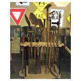 TOOLS AND MORE! - Lots Of Industrial Shelving / Racks, Stainless Steel Counter Tops, Stacking Bins, Hand & Power Tools, Roll Around Display Shelf, Lawn & Garden Tools, Barn Pulleys, Barn Rope, Nice Over Head Garage Door, File Cabinets, Coleman Camping Stoves, Extension Cord, Oil Cans, Lawn Cart, Overhead Garage Door AND MORE!