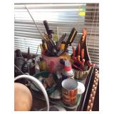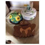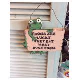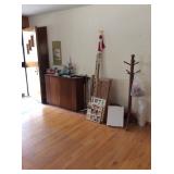 Inventory: kitchenware dishes glassware vintage tin canisters cookie jars stained glass window decorations frog figurines, knick knacks, frogs decor playing cards pocket knives Asian artwork wall hangings and prints coat rack Sanyo boom box radio A/C window unit air conditioner China hutch cabinet retro chairs tape cassette player radio lawn garden decorations small hand tools yard tools vintage Hanes pantyhose deadstock new in package fan bells screen room divider side table storage cabinet miscellaneous |