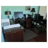 Caribbean style sofa, Renaissance Revival pair of chairs, antique barrister bookcases, queen bed, love seat sofa bed, Tommy Bahama style queen bed, L-shaped office desk, library table, Bose radio, Victorian triple back sofa, oriental rug, pair of stained glass panels ( 13" W x 67" H), & 2 other panels, 2 TVs, marble top chest, 1900's round oak table, Empire secretary bookcase, 7 Victorian chairs, mirrors, Sleigh grandfather clock, leather electric recliner, lamps, a lot of small tables and cabinets, wall hung curio, artwork, Steuben owl, St. Lambert candlesticks, mahogany bookcase, painting rack, bar chairs, kayak car rack, file cabinets, nice accessories, some linens & kitchen. Sale by Julie McClure
