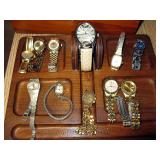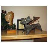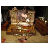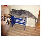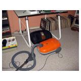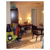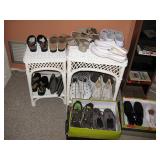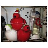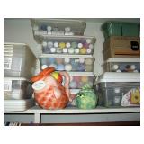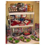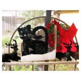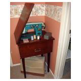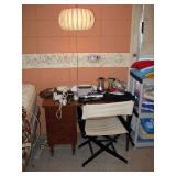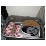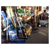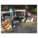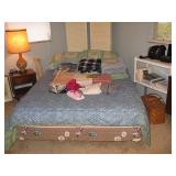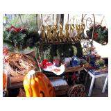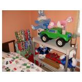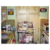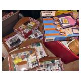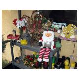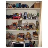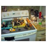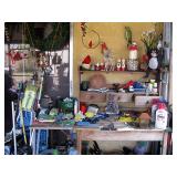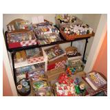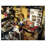 There's also an array of furniture and general household: Two queen beds, one is an electric Flex-a-Bed with Sleep Number mattress, small dining & china cabinet set, buffet, various ceramics, crystal and glass, demitasse cup and saucer sets, treenware, great punch bowl set, Corelle dinnerware and other common kitchen items, appliances incl. GE washer dryer, smallish cabinet type Acme refrigerator, new gold chargers, country buffet in box, light wood ent. center, lamp table and coffee table, white wicker dresser with mirror & matching occasional tables, plant stand and etagere, sketch & vintage desks, director chair, vintage sewing machines (Universal & Wards Signature portable) nice women's clothes many unused (size M) and size 8 shoes, hand bags & accessories, luggage and soft folding cat carriers, 1960s bedroom suite, 33 RPM records & few 78s, VHS and cassettes, books, CDs, NIB Crosley portable turntable, cameras including Polaroid, binoculars, Sirius XM radio, medical equipment, toys, box upon box of unused craft kits, 100's of various paints and craft supplies. Gift wrapping paper, gift bags, ribbons, bows... way too much Christmas, fall and Halloween holiday items, many NIB or unused. Costume jewelry & watches. Raggedy Ann dolls & collectible ornaments, stained glass and hand-painted raised floral motif platters, cookie jars, battery powered holiday lights, huge stuffed cat-fish, Jim Shore felines, framed art & florals, potato box hamper, home painting supplies including poly tarps, plastic sheeting etc., hand tools, Rotozip, NIB Magic Mitre, basic hardware fasteners tape etc., vacuums incl. Kenmore HEPA, vintage glass doorknobs, pair of antique yellowware bowls, small wooden bench, numerous metal yard art and other outdoor items, teak garden potting bench with hutch & hidden soil bin, gardening supplies, pots and yard tools, 10 foot ext. ladder & step ladders, folding chairs, unused chemicals for lawns, insects & weeds, gloves & cleaning supplies, more heavy green extension cords than we've ever seen, timers and other power sources for all those Christmas lights & outdoor holiday decor...