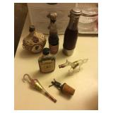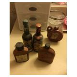 old perfume bottle and vintage mini liquor bottles