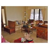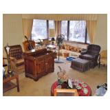 Here is our short list: Sterling flatware (not shown) China sets Refrigerator Patio tables Park bench Cement bird bath Tufted easy chairs Arm chairs Lift-A-Chair (electric) Upholstered barrel chair Mission style Oak rocking chair Solid wood end tables Lamps Colored glassware Many baskets 60's Childs games Love seat Sofa Asian round table Asian plates Oil paintings Asian figurines' Asian needlepoint Asian vases Pole lamp Wall mirrors Asian dolls Asian sun shade Many 60's LP (all in good shape) Onkyo Amp TX-8410 Onkyo TA-RW311 Cassette player Onkyo DX-C220 CD player JVC turntable Asian sitting pillows DVD Players Vintage Sheet Music Electric (old school) organ Carnival glass Oak display case Lots of crystal glassware Solid Oak dining table w/4 chairs and 2 leafs Magazine rack Vintage baby hi-chair Vintage sitting chair Solid Oak buffet Solid oak kitchen table 6 Bamboo carved sitting chairs Easy chair w/ottoman Lane cedar chest Nesting tables Glass top end tables Vintage ice box/table 4 Solid Oak sitting chairs Oak chest Single bed Office chair Office desk Brass dinner/ship bell Bread maker File cabinet Adult sanitary items Picnic basket Oak full length mirror Bathroom items Leather recliner Leather sofa Oak bookcase Vintage tools Kirby vacuum w/acc Many Asian items Lots and Lots of handcrafts goods Mid Century bedroom set Vintage Hawaiian guitars Vintage dolls Vintage trunk Picture frames Vintage handmade quilts Sitting Lane chest Brass double bed Vintage handmade clothing Bernette serger machine, model 994 Singer Featherweight sewing machine Model 221 PFAFF Sewing machine Model 1222E Vintage Kenmore sewing machine Sewing tables Country buffet Kenmore washer/dryer Exercise equipment Chippawa Five chipper Gas weed eater Lazy Boy rototiller Gas leaf blower Vintage iron bed post Craftsman tool box 5 Speed drill press Electric saws Paint pots Many vintage hand tools Shop ventilator Hand tools Radial saw Disability equipment Laser level Kitchen Aid mixer Full kitchen Wager iron pans Jewelry (not shown) Custom wall mirrors Sewing tables Sewing fabrics Sewing notions