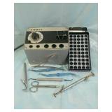 Personal and Professional items from the Estate of Dr. Martin F. Kennedy, DDS. Dental Chairs, X-Ray Machines, Dental Instruments, Ford F-150 Lariat, 17' Smoker Craft Fishing Boat & more. 1 Adec Dental Exam Chair Adec Patient Exam Chair model # 2132 2 Adec Dental Assistant Stool Adec Dental Assistant Stool model # 1620 3 Adec Doctor's Stool Adec Doctor's Stool model # 1601 4 P & C Dental Light Pelton & Crane Cascade Dental Light model # 16565 5 Phillips Oralix 65 Dental X-Ray Phillips Dens-O-Mat Oralix 65 Dental X-Ray system 2600 series. Manufacture date October 1983 6 Adec Dental Exam Chair Adec Patient Exam Chair model # 2132 7 Adec Doctor's Stool Adec Doctor's Stool model # 1601 8 Adec Dental Assistant Stool Adec Dental Assistant Stool model # 1620 9 Phillips Oralix 65 Dental X-Ray Phillips Dens-O-Mat Oralix 65 Dental X-Ray system 2600 series. Manufacture date February 1985 10 P & C Dental Light Pelton & Crane Cascade Dental Light model # 16565 11 Adec Dental Exam Chair Adec Patient Exam Chair model # 2132. Needs minor reattachment of seat covering, as seen in picture # 4 12 Adec Doctor's Stool Adec Doctor's Stool model # 1601 13 Adec Dental Assistant Stool Adec Dental Assistant Stool model # 1620 14 P & C Dental Light Pelton and Crane Dental Light. The Light Fantastic. 15 S.S. White Dental X-Ray S.S. White XRM Spacemaker Dental X-Ray model 90 W 16 NCG Chemetron Flow Meter NCG Chemetron N2O Nitrous Oxide Flow Meter. 17 Auto-Tune Scaler Le Clean Machine Auto-Tune ultrasonic tooth scaler. Manufactured 1992 18 Adec Dental Exam Chair Adec Patient Exam Chair model # 2132. Slight discoloration on seat as shown in picture #3. Well cared for, normal wear. 19 Adec Doctor's Stool Adec Doctor's Stool model # 1601 20 Adec Dental Assistant Stool Adec Dental Assistant Stool model # 1620 21 Adec Dental Light Adec Dental Light model number # 6300 22 Gendex GX-Pan X-Ray System Gendex GX Panoramic X-Ray System model 1100080-G1. Manufactured 1992 23 Browne-Morse 5 Door Filing Cabinet Browne-Morse 5 door filing cabinet. 19.5" x 36" x 63". Cabinet does not lock. 24 Browne-Morse 5 Door Filing Cabinet Brown-Morse 5 Door Filing Cabinet. 19.5" x 36" x 63". Locks & includes 2 keys 25 Browne-Morse 5 Door Filing Cabinet Browne-Morse 5 door filing cabinet. 19.5" x 36" x 63". Cabinet does not lock. 26 Browne-Morse 5 Door Filing Cabinet Browne-Morse 5 door filing cabinet. 19.5" x 36" x 63". Cabinet does not lock. 27 Montisa 5 Door Filing Cabinet Montisa 5 door Filing Cabinet. 19.5" x 42" x 63" Cabinet does not lock. 28 4 Drawer Metal Filing Cabinet 4 drawer metal filing cabinet. 25" x 15" x 52" Cabinet does not lock. 29 4 Drawer Metal Filing Cabinet 4 drawer metal filing cabinet. 25" x 15" x 52" Cabinet does not lock. 30 4 Drawer Metal Filing Cabinet 4 drawer metal filing cabinet. 25" x 15" x 52" Cabinet does not lock. 31 4 Drawer HON Metal Filing Cabinet 4 Drawer HON Metal Filing Cabinet 26.5"x15"x52" Cabinet does not lock. 32 Child Size Table with 2 Chairs Child size table with 2 chairs. Well used. 33 Wooden Waiting Room Chair Wooden waiting room chair. Normal wear. 34 Wooden Waiting Room Chair Wooden waiting room chair. Normal wear. 35 Wooden Waiting Room Chair Wooden waiting room chair. Normal wear. 36 Wooden Waiting Room Chair Wooden waiting room chair. Normal wear. 37 Wooden Waiting Room Chair Wooden waiting room chair. Normal wear. 38 Wooden Waiting Room Chair Wooden waiting room chair. Normal wear. 39 Wooden Waiting Room Chair Wooden waiting room chair. Normal wear. 40 Wooden Waiting Room Chair Wooden waiting room chair. Normal wear. 41 Wooden Waiting Room Chair Wooden waiting room chair. Normal wear. 42 Wooden Waiting Room Chair Wooden waiting room chair. Normal wear. 43 Wooden Waiting Room Chair Wooden waiting room chair. Normal wear. 44 Matching Wooden End Tables 2 Matching wooden end tables. 45 HON Upholstered Guest Chair HON upholstered guest armchair model 6008BP 46 HON Upholstered Guest Chair HON upholstered guest armchair model 6008BP 47 HON Upholstered Guest Chair HON upholstered guest chair model 4004GG 48 Wooden Guest Armchair Wooden Guest Armchair. Normal wear. 49 Wooden Guest Armchair Wooden Guest Armchair. Normal wear. 50 Wooden Guest Armchair Wooden Guest Armchair. Normal wear. 51 Wooden Desk Chair Wooden desk chair on casters. Reclines & swivels. Normal wear. 52 Office Desk Wooden 3 drawer office desk made by Indiana Desk Company of Jasper, Indiana. Normal wear, some discoloration on top. 53 2 Fire Extinguishers Lot of 2 fire extinguishers, includes one Amerex. 54 Midmark Water Evacuation Pump Midmark 1.25 horsepower water evacuation pump. 55 Magna Force 5 hp 60 Gallon Compressor Magna Force 5 horsepower 60 Gallon, 140 psi vertical stationary air compressor. 56 Shop Vac Shop Vac UltraPro blower vac. 14 gallons 5.5 h.p. wet dry utility vacuum with attachments. 57 Parkell Sensimatic 600SE Electrosurge Parkell Sensimatic 600SE Electrosurge machine with surgical hand piece, flexible indifferent plate and footswitch. 58 Grinder/Buffer Baldor 1/6 h.p. grinder/buffer with pumice bin, dust collector and several supplemental parts including bits, brush wheel & muslin buffs. 59 3 G.E. X-Ray Reading Lights Lot of 3 General Electric X-ray reading lights in working condition. 60 "The Machine" Precision Vacuum Adapter T & S Dental and Plastics Company "The Machine" precision vacuum adapter. Includes temporary thin splints, splints, clear mouth guards and bite trays. 61 Triad VLC Light Curing Unit Dentsply Triad VLC light curing unit, in working condition. Includes instructions and maintenance & service manual. 62 Prophy Supplies Lot of prophy angles, prophy cups & prophy paste. Includes 10 prophy angles. 63 Soldering Gun, Iron & Solder Weller universal soldering gun. Dual heat 140 100 watts with built-in light and 2 soldering tips in case. Includes 40/60 rosin core electrical solder and 30/70 solder and extra soldering iron. 64 Items for Soldering and Casting Lot of miscellaneous items for soldering and ca