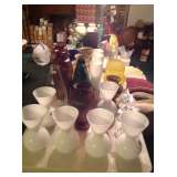 Estate Sale of the late Jo Ellen (Jody) Stamper Watson of Flatwoods, former Russell High English teacher, antique collector, and weaver. Pie safes, dry sink, cherry corner cabinet, walnut blind door cabinets, knockdown walnut wardrobe, single door walnut wardrobe, brass bed, small tables, large collection of Pilgrim glass including Kelsey Murphy cameo and sand carved pieces and Mario Sandon Venetian pieces. Newcomb 46" loom, woven pieces by Mrs. Watson, quilts, pictures, round oak table and chairs, books, holiday, household items. More pictures will be added during the week. |