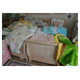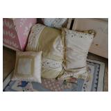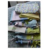 Linens Large Assortment of linens, including vintage Bedspreads, quilts, bed linens, decorative pillows Pottery Barn Teen Duvet Cover, curtain panels and shams Large Assortment of fabric remnants