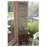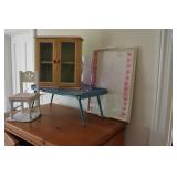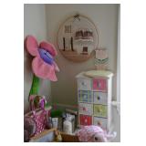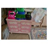 Furniture Coffee / Game Table with Backgammon Antique Oak Buffet Dining Chairs Assorted Styles Ivory Couch with matching chaise Couch with built-in recliner Wood table Pine storage cabinet Pine kitchen table (double side drop down) Antique oak drop leaf dining table Assorted Lamps Wood framed mirror (vintage) Corner wood hutch Decorative tables Wicker nightstand Wicker hampers Antique Crib Antique field cradle Antique Oak Medicine Cabinet Antique Writing Desk with 5 drawers White 3 drawer Dresser Pink painted 3 drawer Dresser PA Starck Piano Co. Piano bench 2 Twin whitewash sleigh beds with matching 9 drawer Dresser with swivel mirror Metallic painted 6 drawer Dresser Large beveled mirror with crackle finish frame Painted chairs White wood Rocking chair Hall mirror with built in storage bench Wood coffee table Closet shelving system Girls Doll House Twin Bed Headboard
