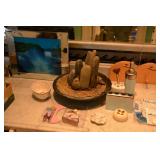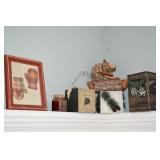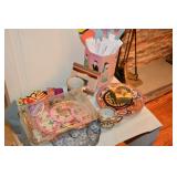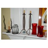 Decor Frames (assorted sizes and styles) Breakfast trays Brass Chandeleirs (2 sizes) Assorted Clocks Plant Stands Stone Water feature Assorted decorative rugs Brass Candleholders assorted Large selection of decorative vases Multicolored glass Wrought iron magazine rack Multitude of candle holders all shapes, sizes and styles Candles (many different sizes - huge assortment) Umbrella container (super cute!) Fireplace sets (brass and wrought iron) Vintage Baby Scale