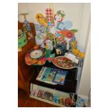 Toys/Sports Large selection of Madeline accessories Doll Crib Barbie Dolls and furniture Madeline tea set in carrying basket Dart board in cabinet Board Games Baseballs (Wrigley field Cubs practice balls)