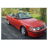 Automobile 2001 Red Saab Convertible 93 with 65,500 miles