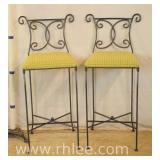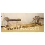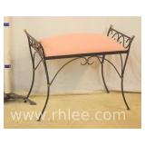 Iron bench with pink upholstered seat; 68-102 - 27.5x15x22.5