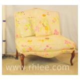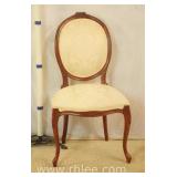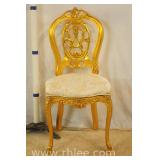 Carved French style side chair with white fabric; 68-900 - (back is slightly loose at seat) - 21x23x37