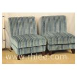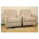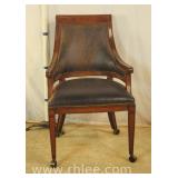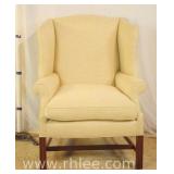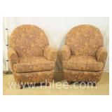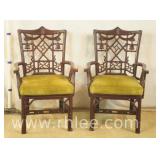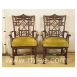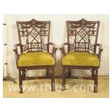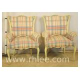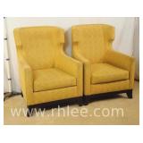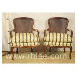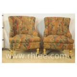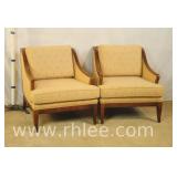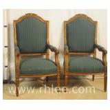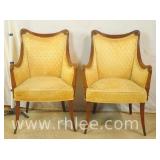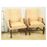 Pair of upholstered arm chairs with mahogany frames; 68-881 - stretcher base - 25x27x39