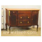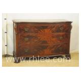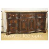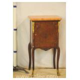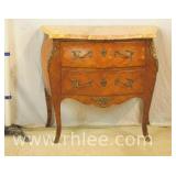 Inlaid bronze mounted Bombe style 2 drawer commode with marble top; 68-973 - 33x16x30.5