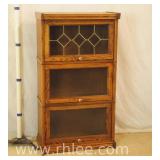 Small oak 3 section bookcase with beveled glass door; 68-903 - 1 piece design - 25.5x13x45.5