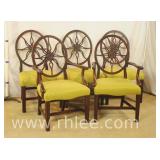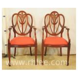 Pair of carved mahogany shield back open arm chairs; 68-916 - spade feet - 21x21.5x40