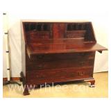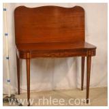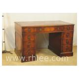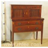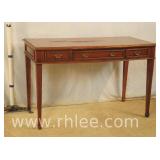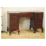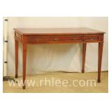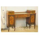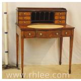 Inlaid mahogany step back desk with leather top; 68-104 - spade feet - 32x20.5x38.5