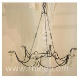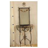 Half round marble top iron console table with mirror; 68-898 - etched mirror - (marble has been broken and repaired) - 26x10.5x32 console; 18.5x33.5 mirror