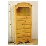 Pine 6 drawer chest with open top and green trim; 68- - 30x18x74