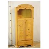 Pine 2 door over 1 drawer cabinet with open top; 68- - green trim and decorated doors - 30x18x74