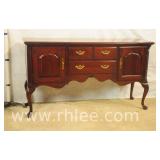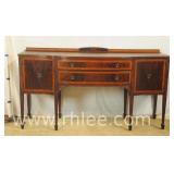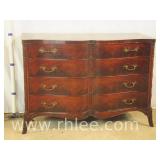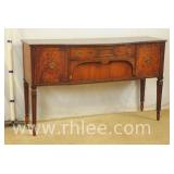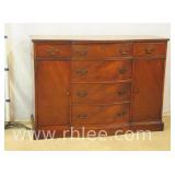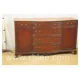American of Martinsville mahogany bow front sideboard; 68-869 - divided drawer - (trim molding replaced on left side) - 50x20x36