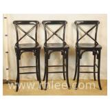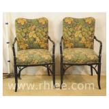 Pair of black cane cut open arm chairs with floral tapestry upholstery; 68-931 - 23x24x38.5