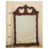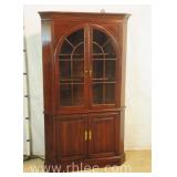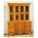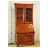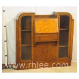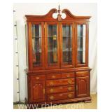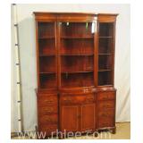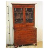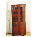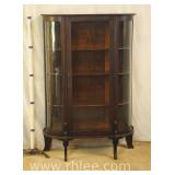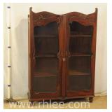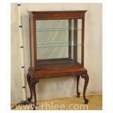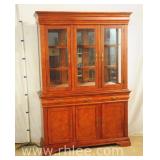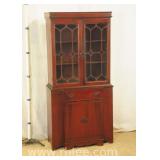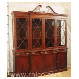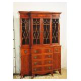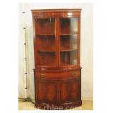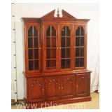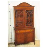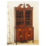 Crotch mahogany china cabinet; 68-954 - (veneer crackle in pedement top) - 36x17x75.5