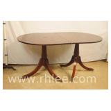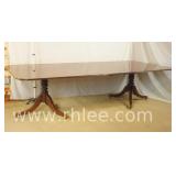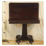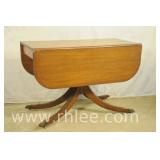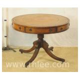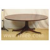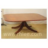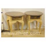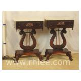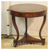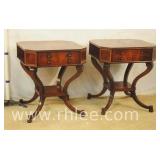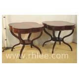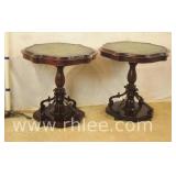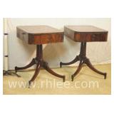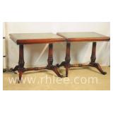 Pair of mahogany pedestal base lamp tables with green leather tops; 68-957 - casters - 28x28x28